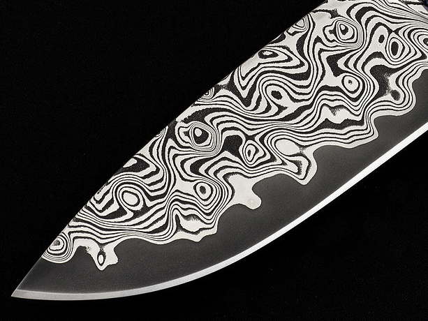 San-Mai layered MagnaCut core stainless damascus. Crucible MagnaCut is a groundbreaking American-made powder metallurgy stainless steel for knives. An excellent combination of toughness and wear resistance makes it a great choice for small folders, choppers, or kitchen knives. Composition of outer layers - AISI304 + AEB-L steel. Soft annealed. High contrast etching. Hardenable up to 62 HRc. Marking: "FF Magna core". Hashtags: #HardcoreFuturon #FFMAGNAcore