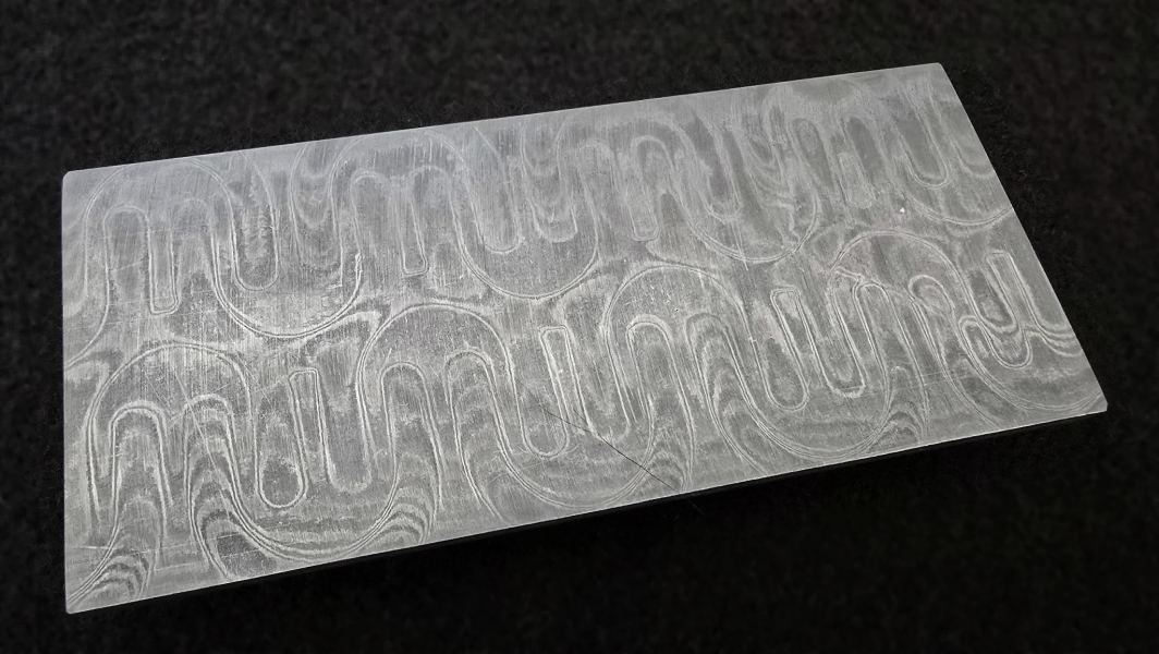 San-Mai layered Elmax core stainless damascus. Elmax Superclean (by Uddeholm) is powder steel with an excellent grain structure, providing great wear resistance, corrosion resistance, and dimensional stability. Best for knifemaking. Composition of outer layers - AISI304 + AEB-L steel. Soft annealed. High contrast etching. Hardenable up to 61 HRc. Marking: "FF ELMAX core". Hashtags: #HardcoreFuturon #FFELMAXcore #HardCOREfuturon
